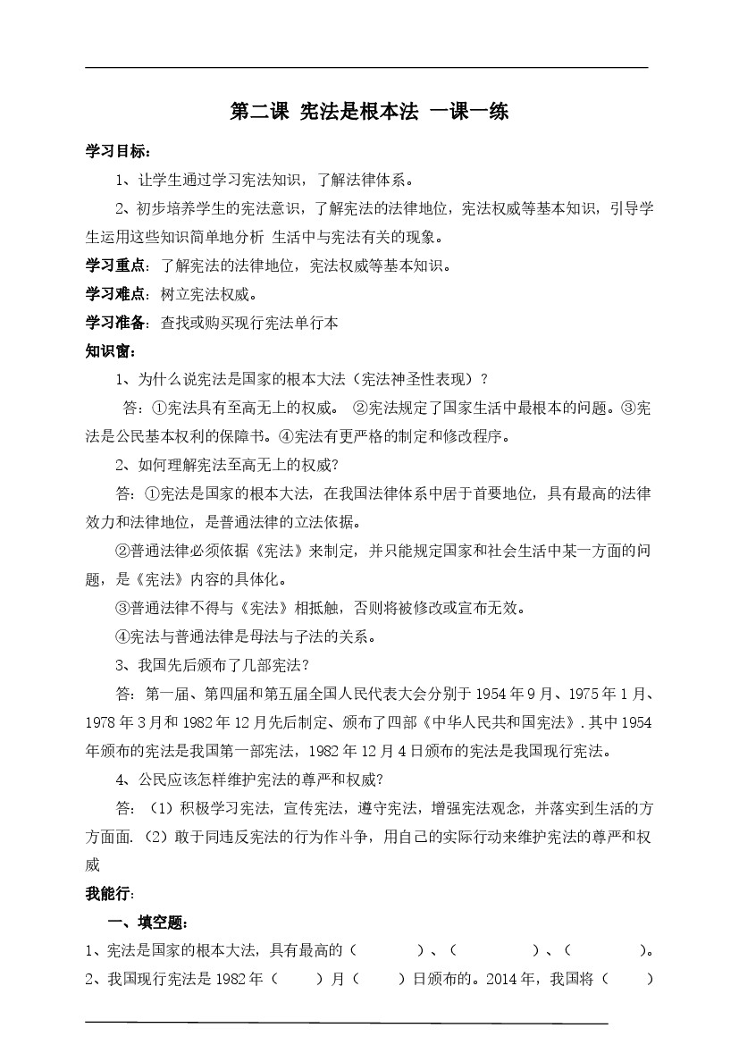 六(上)道德与法治 第2课练习
