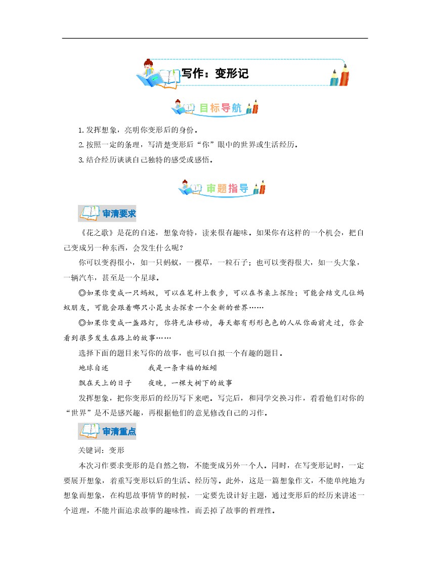 人教部编版六年级语文上册第1单元同步作文:变形记-写作指导+范文赏析+病文升格-部编版语文六年级上册