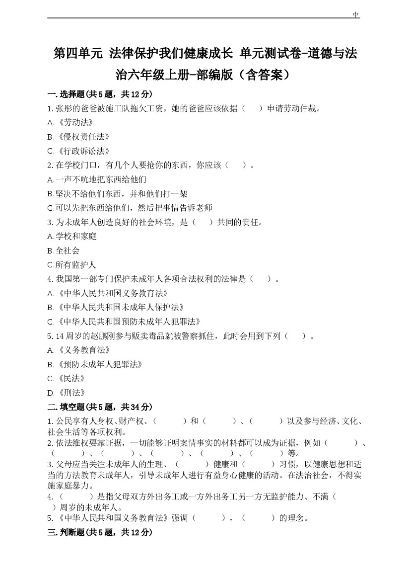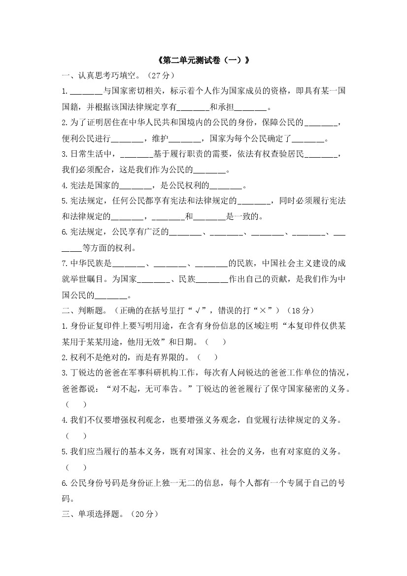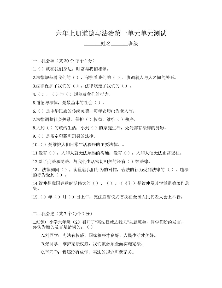 六上道法试题-期中全优卷二 部编版(word,含答案)