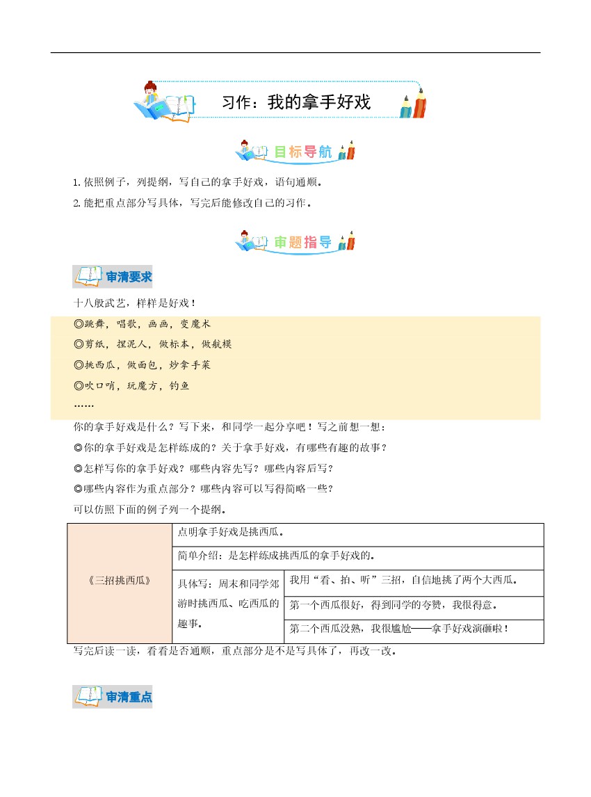 人教部编版六年级语文上册第7单元同步作文:我的拿手好戏-写作指导+范文赏析+病文升格-部编版语文六年级上册