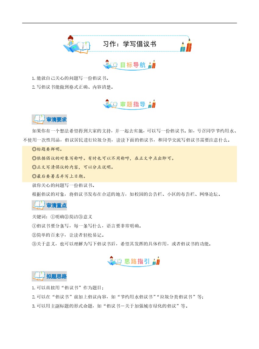 人教部编版六年级语文上册第6单元同步作文:学写倡议书-写作指导+范文赏析+病文升格-部编版语文六年级上册