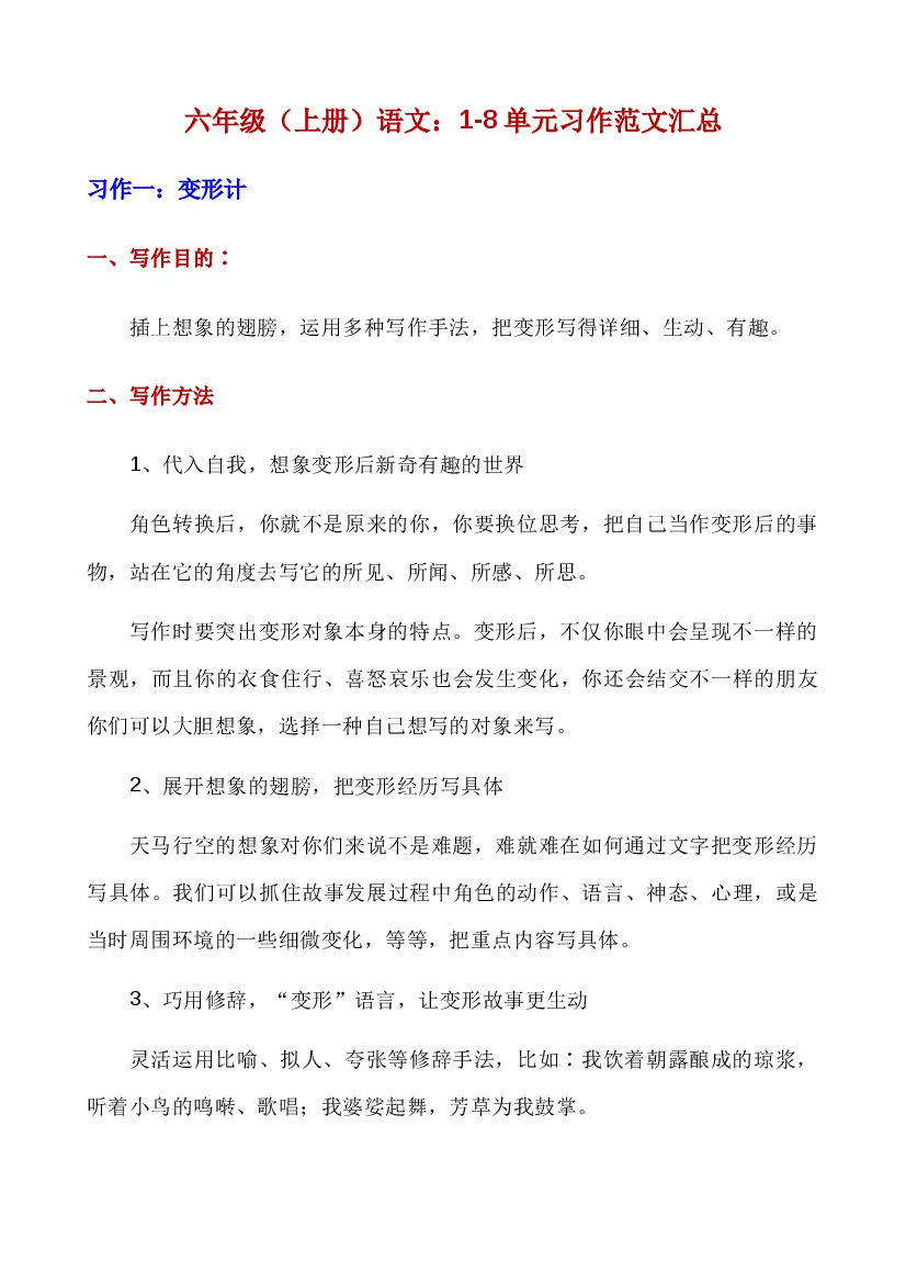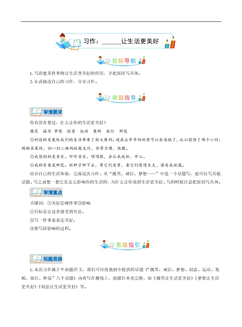 人教部编版六年级语文上册第3单元同步作文:______让生活更美好-写作指导+范文赏析+病文升格-部编版语文六年级上册