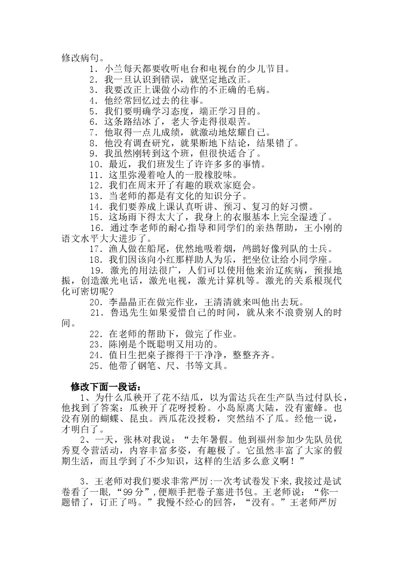 25年秋六上语文病句修改(一)