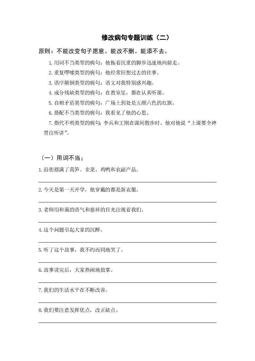 25年秋六上语文修改病句专题训练(二)