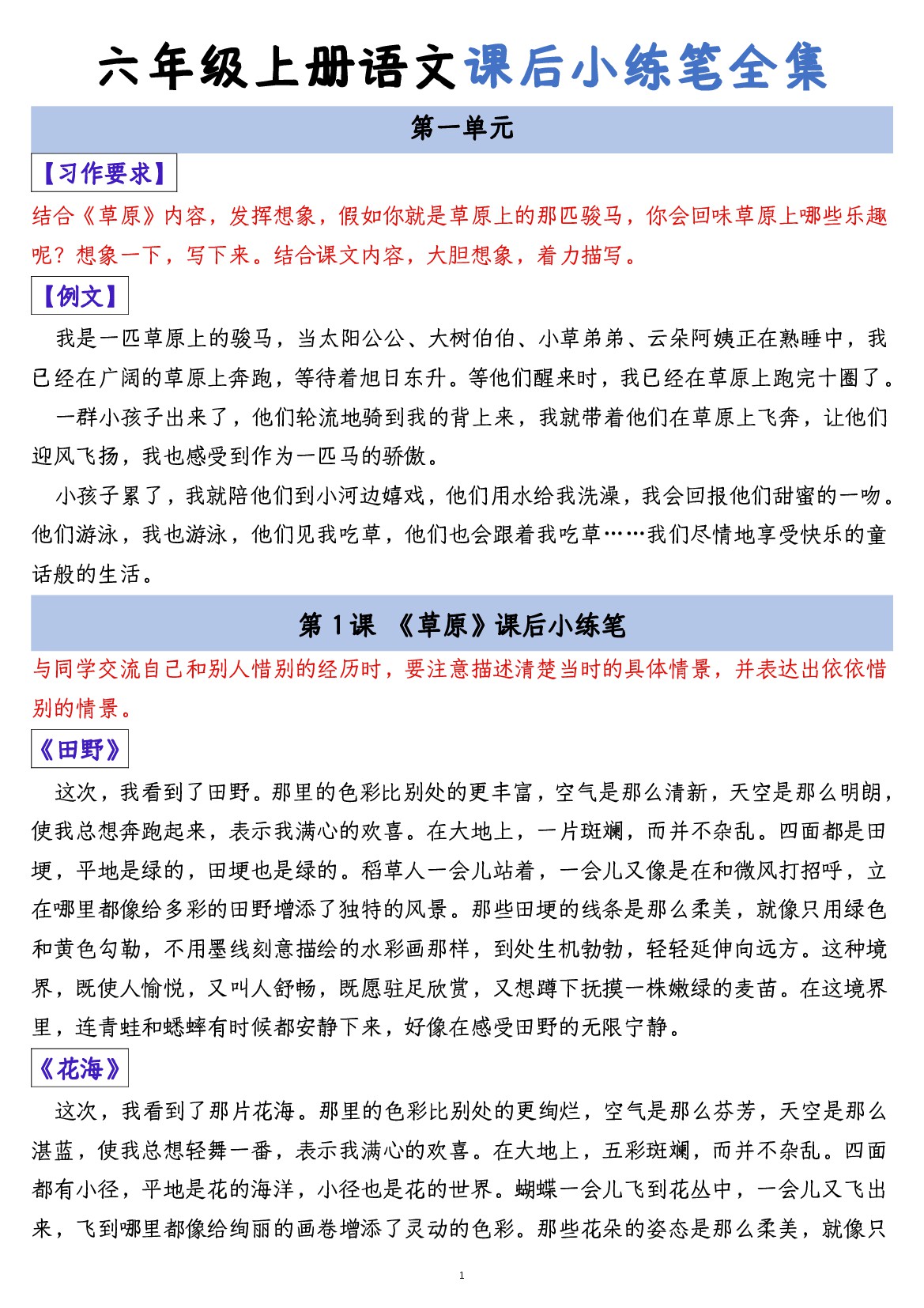【写作练习(课后小练笔)】六上语文