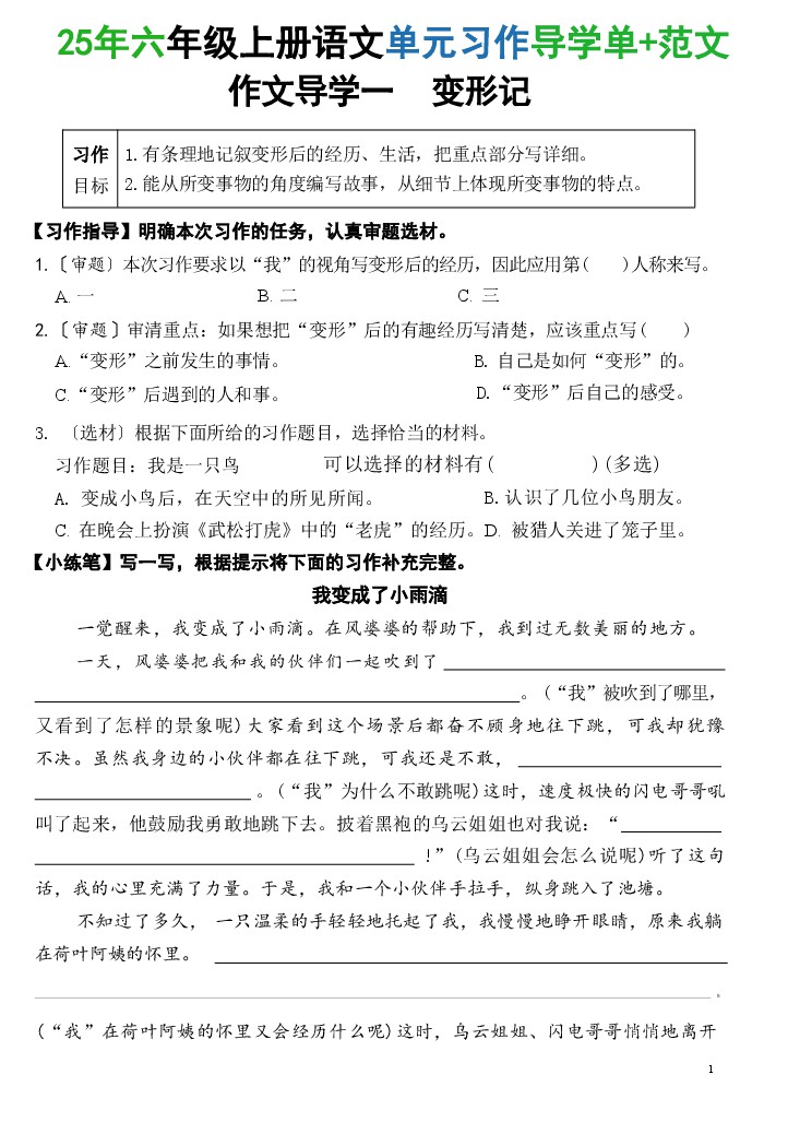 25六上语文1-8单元习作导学单+范文(34页)