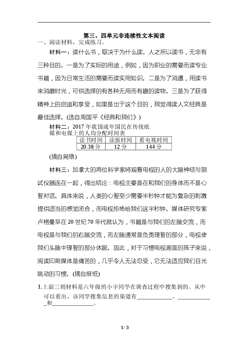25年秋【六上语文】第三、四单元非连续性文本阅读