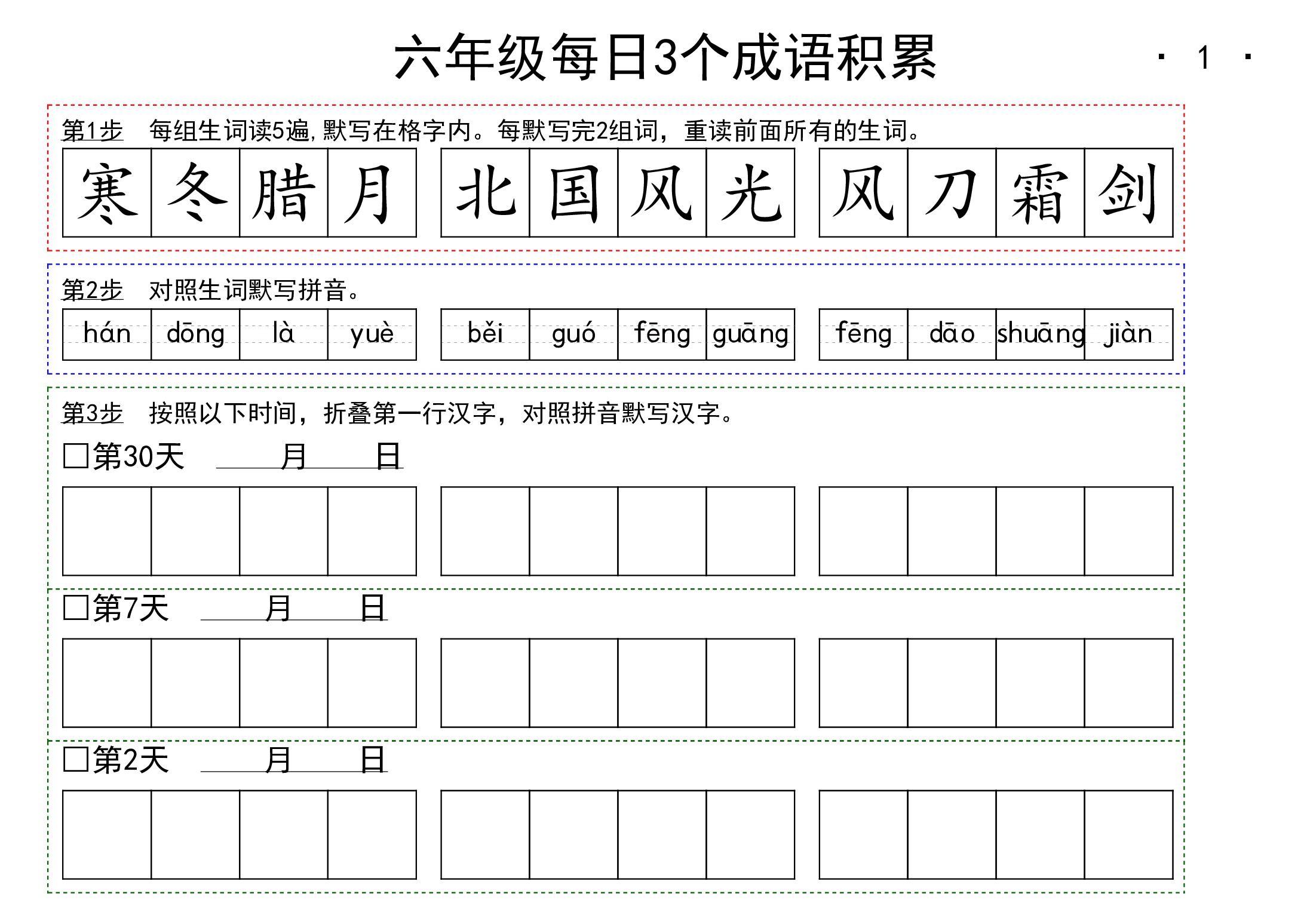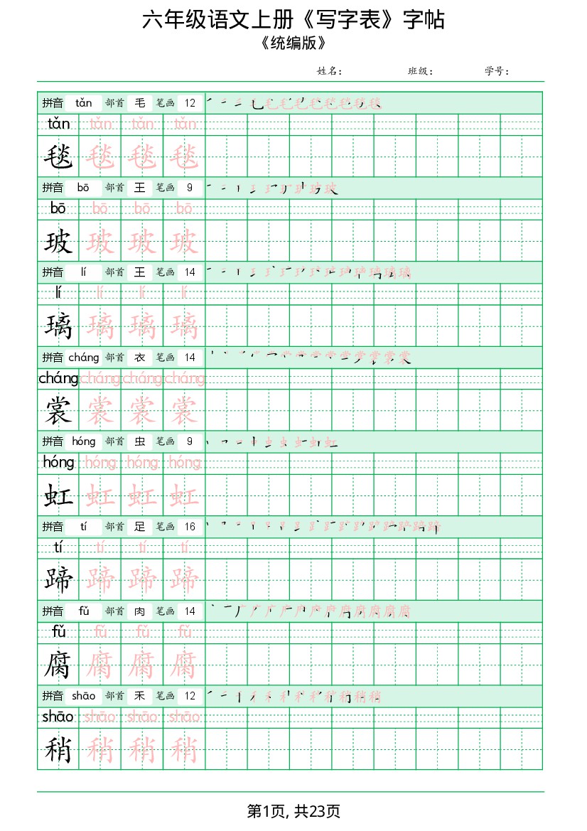 2025年六年级上册语文【默写-词语表】(含答案14页)