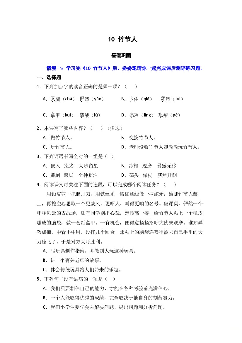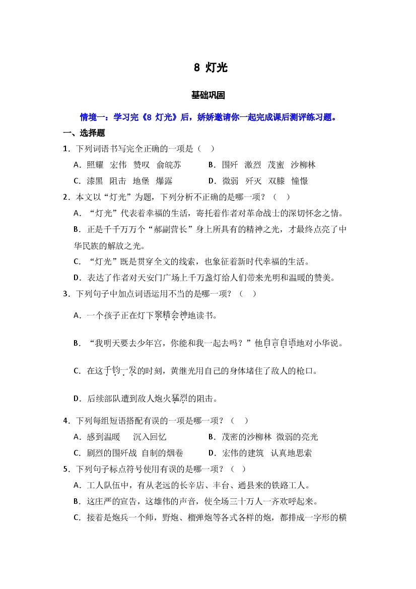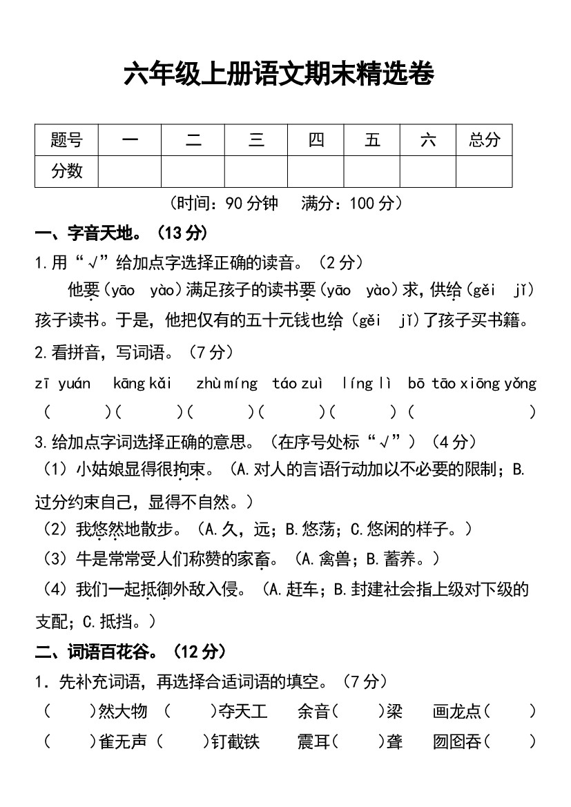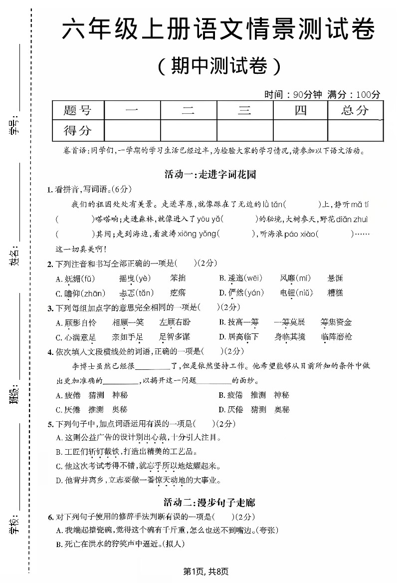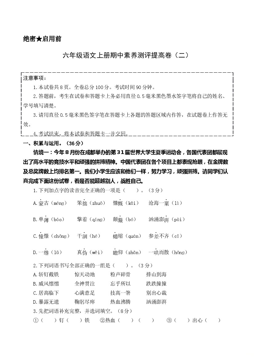 25年秋六上语文期中素养测评提高卷(二)(统编版)A4版