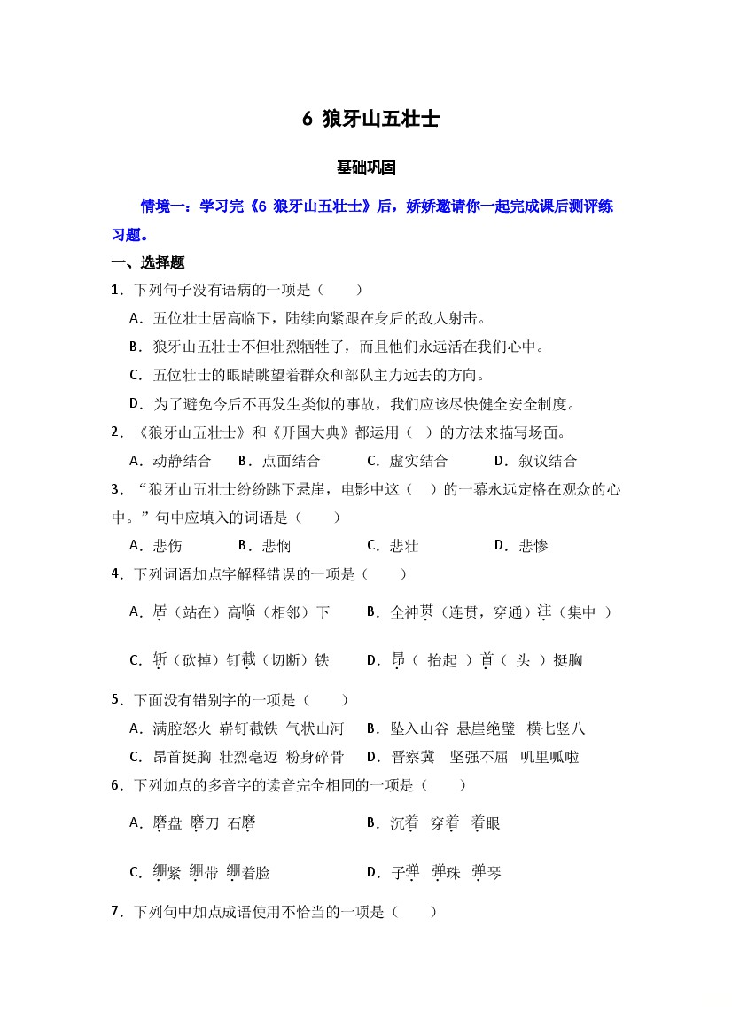 6 狼牙山五壮士 -语文六年级上册(统编版)