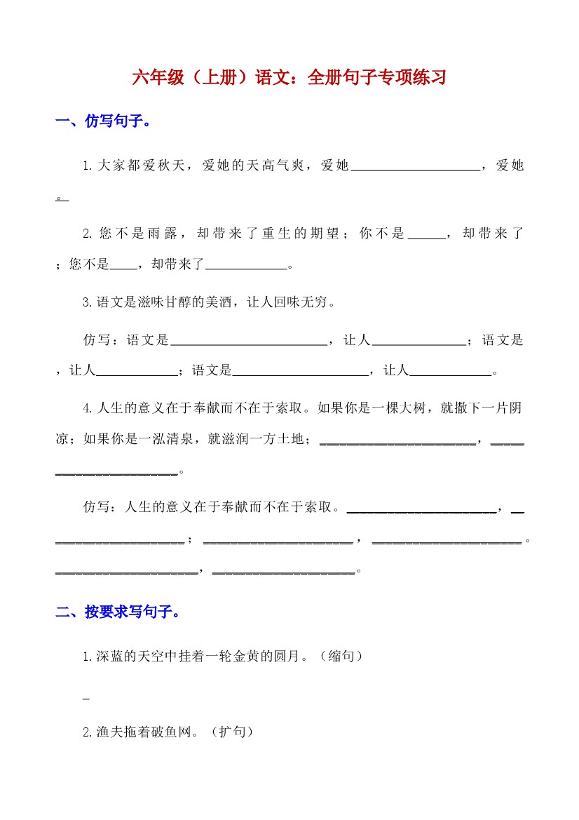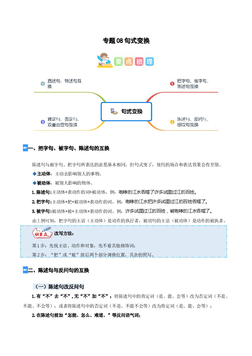 五升六暑假衔接语文知识点专题08 句式(讲义+试题)