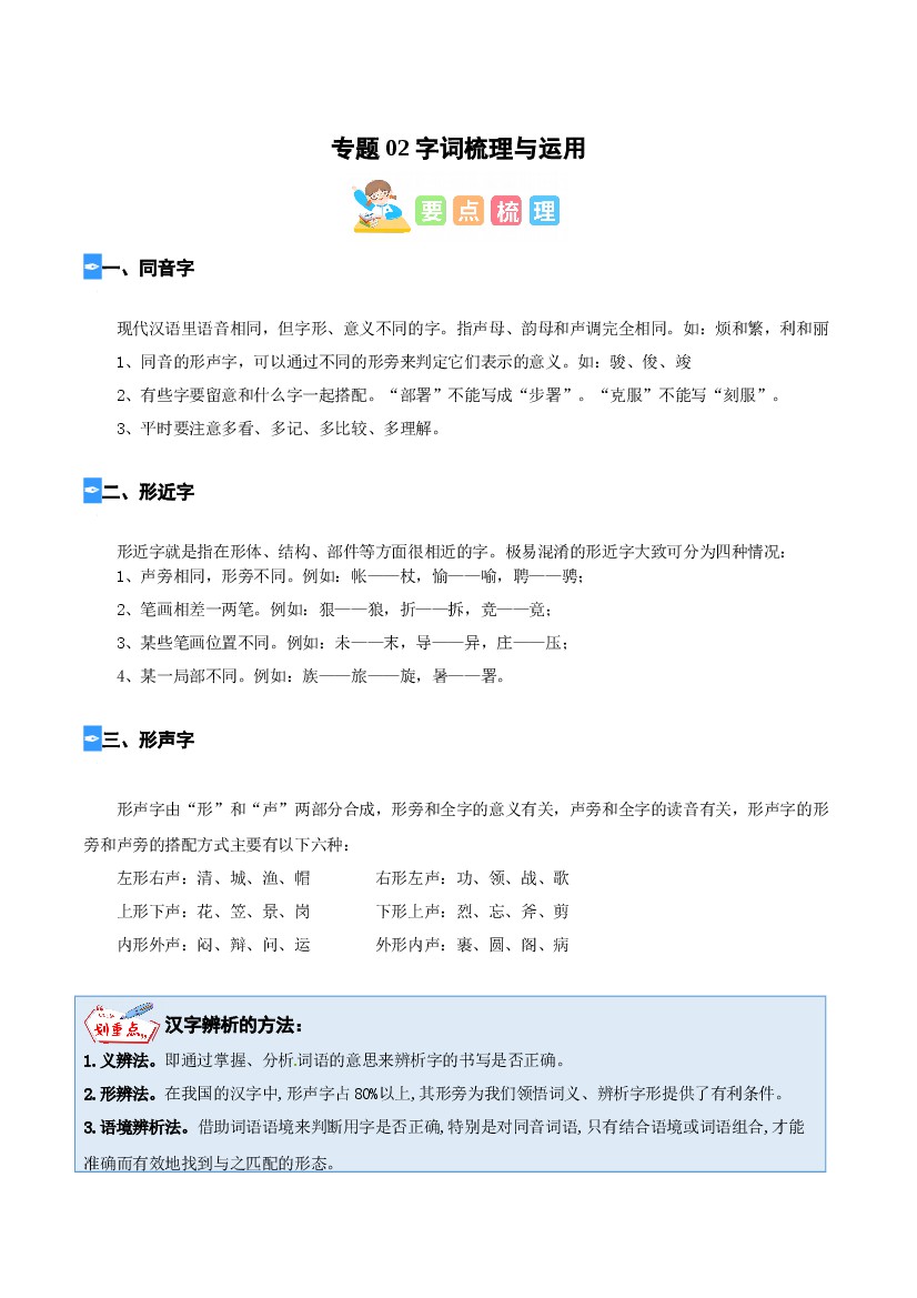 五升六暑假衔接语文知识点专题02 字词梳理与运用(讲义+试题)
