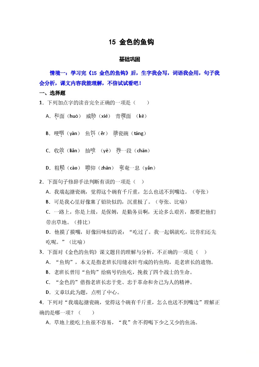 15 金色的鱼钩 -语文六年级上册(统编版)