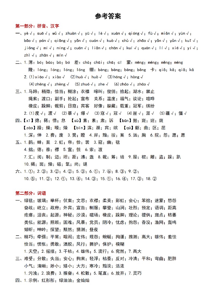六(上)语文专项复习《字词》1~4单元
