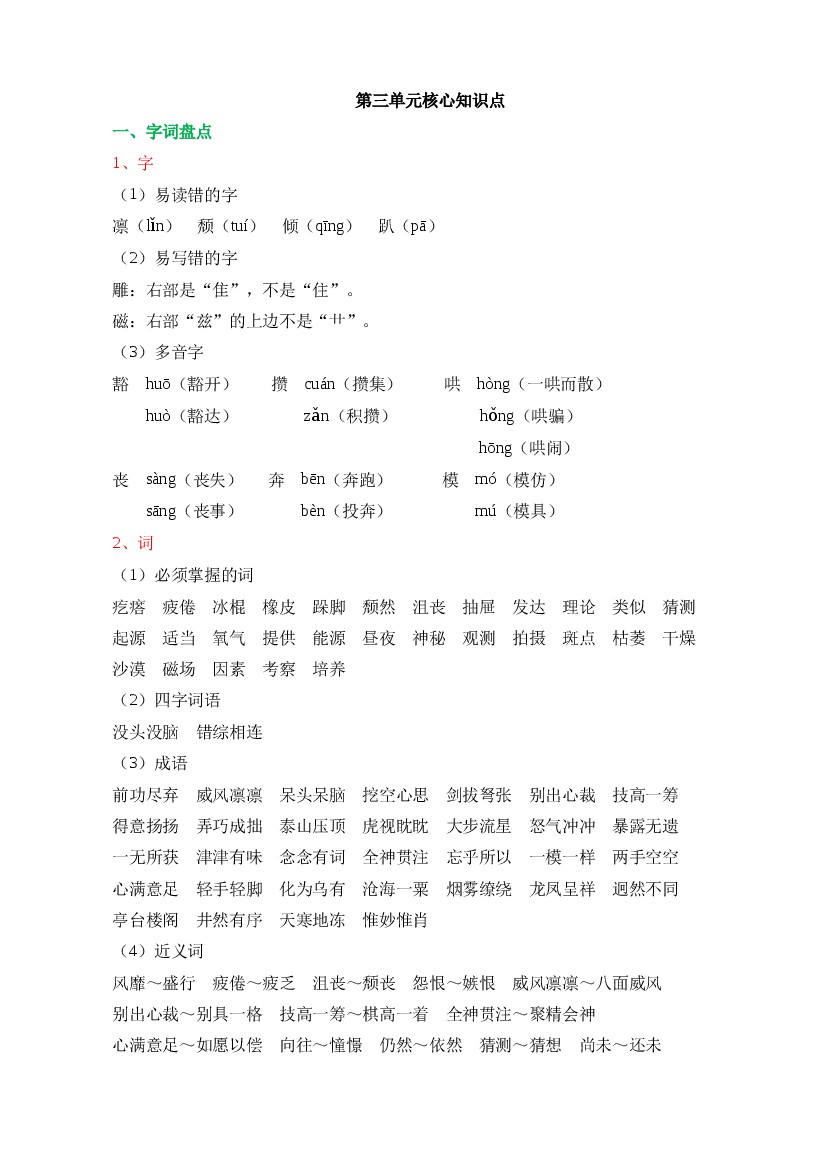 第三单元(知识盘点+单元测试)—部编版六年级上册(含答案)