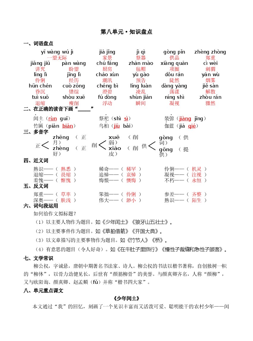 第八单元(知识盘点+单元测试)—部编版六年级上册(含答案)