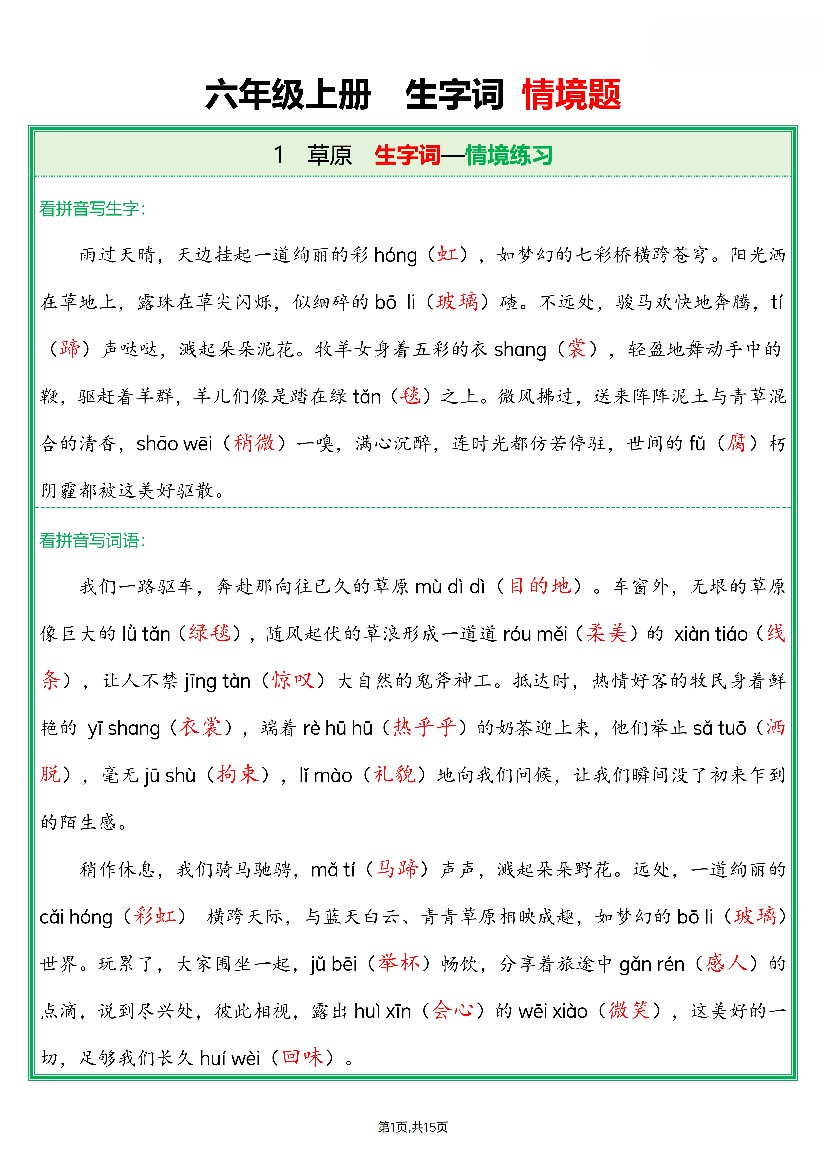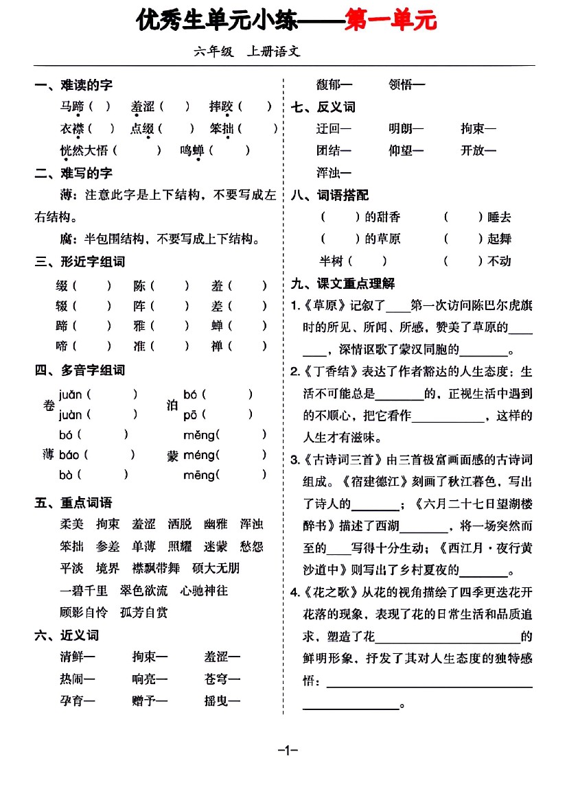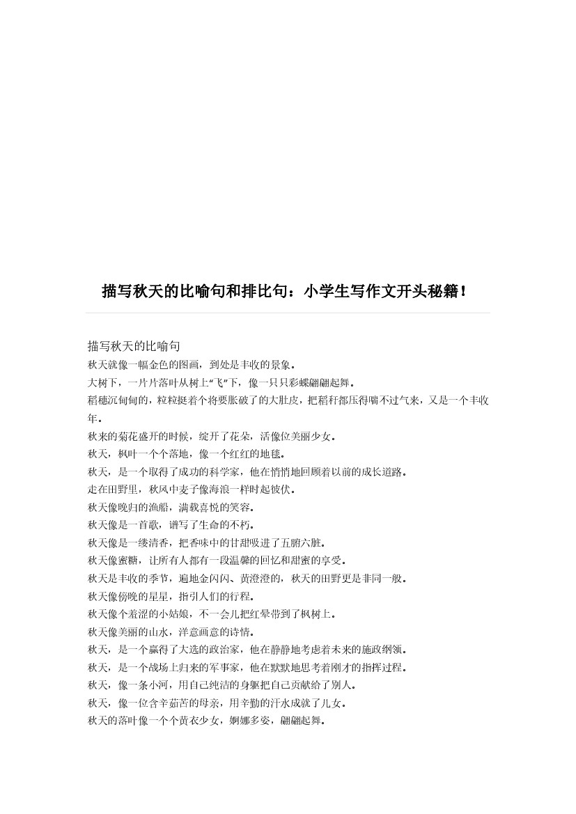 25年秋【六上语文】描写《秋天》的比喻句和排比句