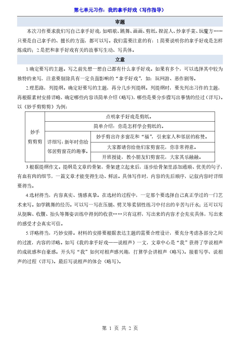 25年秋【六上语文】第7单元习作《我的拿手好戏》(写作指导)