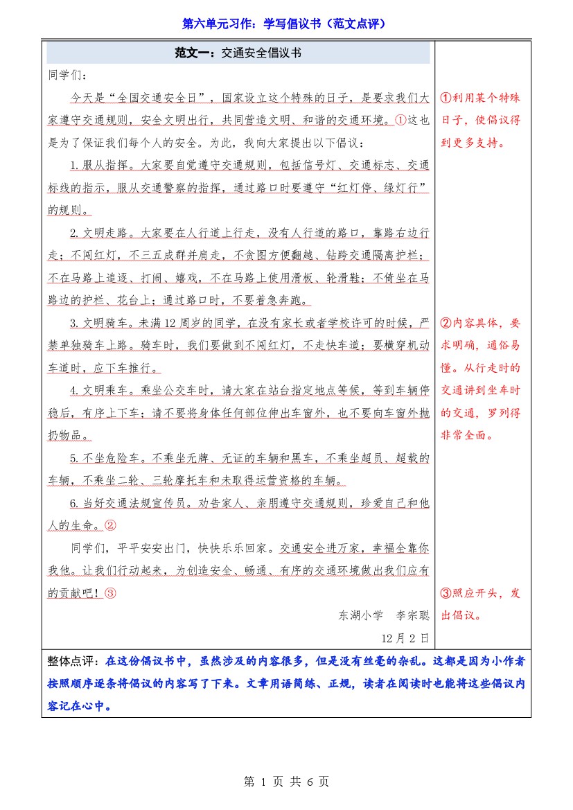 25年秋【六上语文】第6单元习作《学写倡议书》(范文点评)