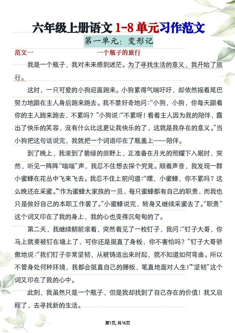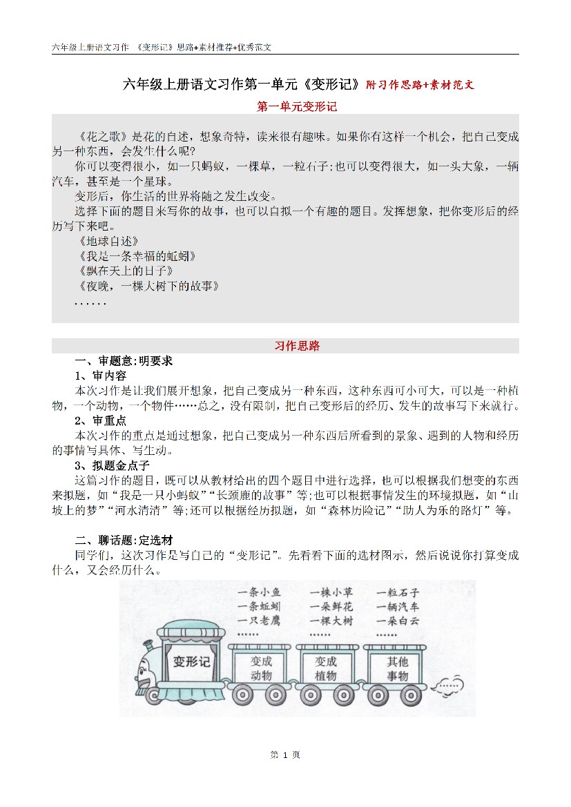 《六年级上册语文习作 《变形记》思路+素材推荐+优秀范文》