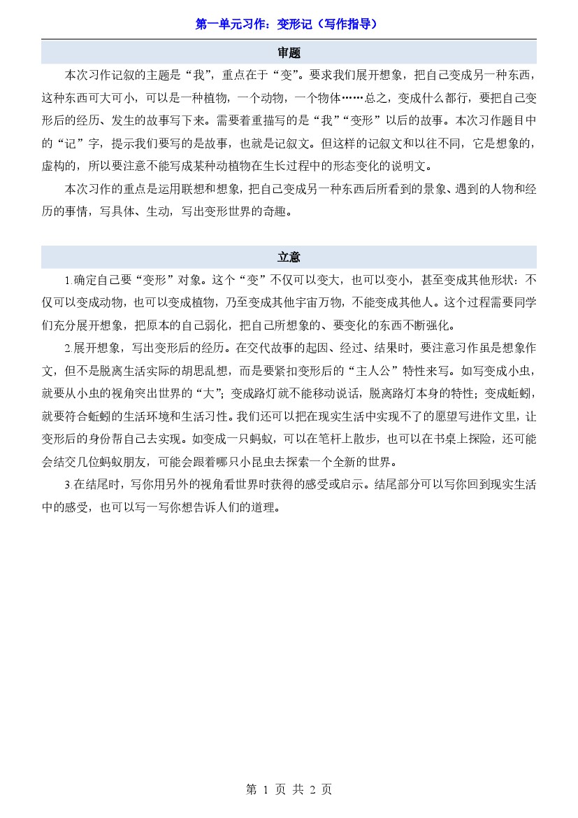 25年秋【六上语文】第1单元习作《变形记》(写作指导)