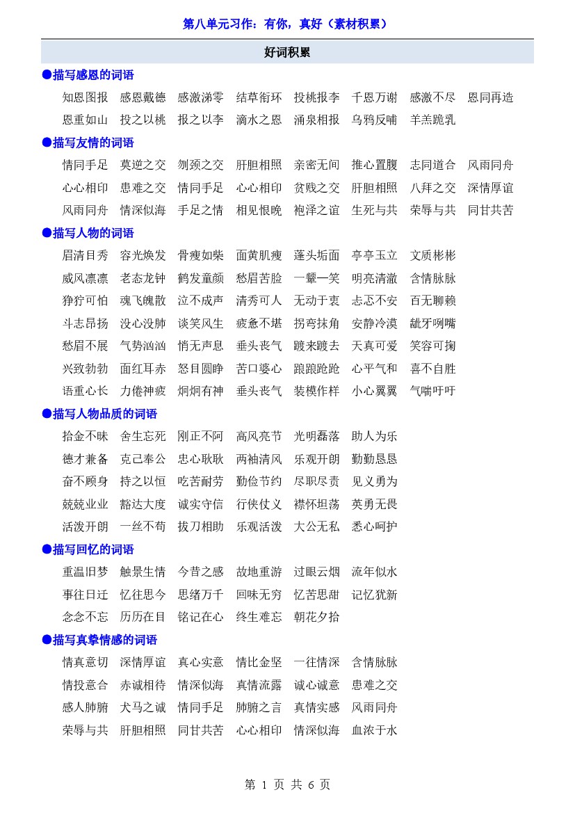 25年秋【六上语文】第8单元习作《有你,真好》(素材积累)