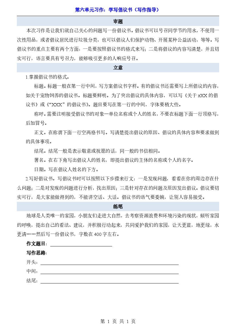 25年秋【六上语文】第6单元习作《学写倡议书》(写作指导)