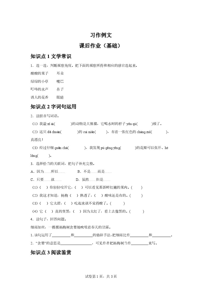 25年秋【三上语文】习作例文 随堂检测