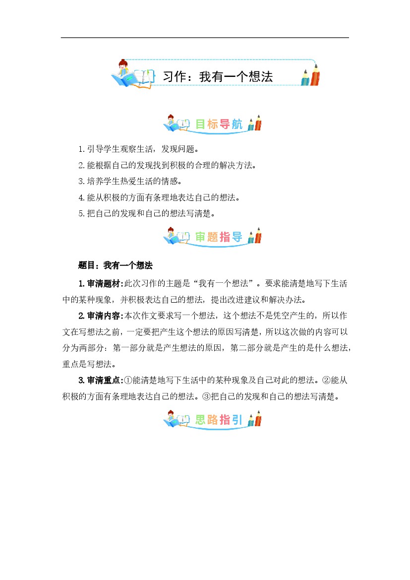 人教部编版三年级语文上册第7单元同步作文:我有一个想法 写作指导+范文赏析+病文升格(学生版)-部编版语文三年级上册