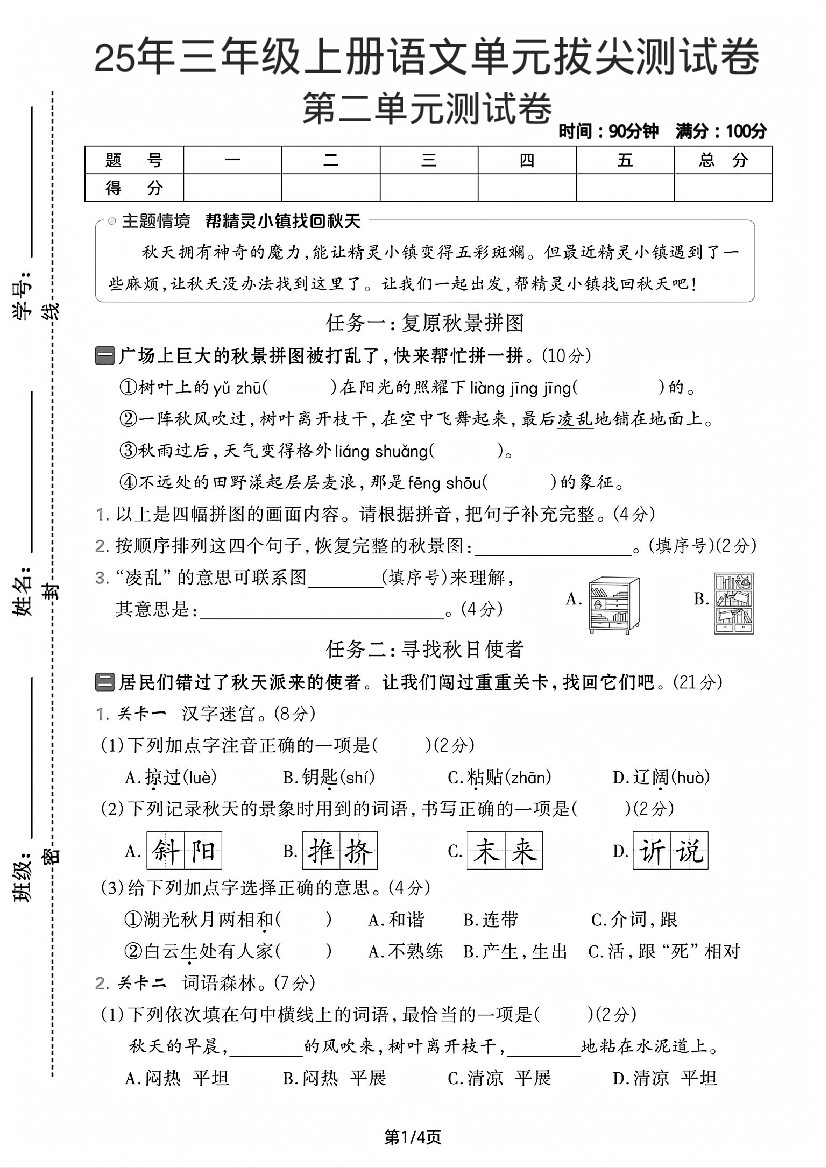 【25学年三上语文第二单元拔尖检测卷-凌乱(含答案5页)