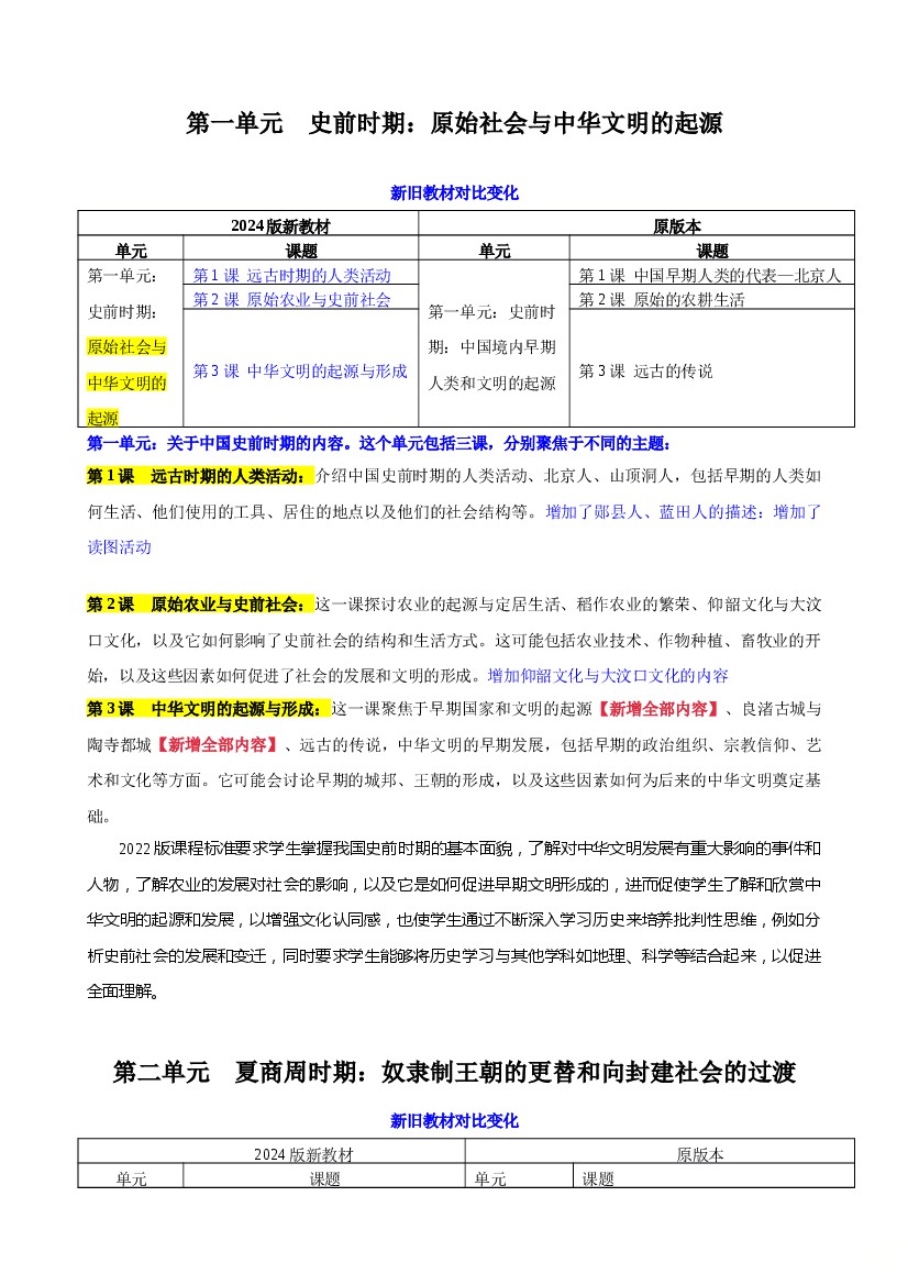 7年级上册 -2024全新改版新旧版对比(部编版)