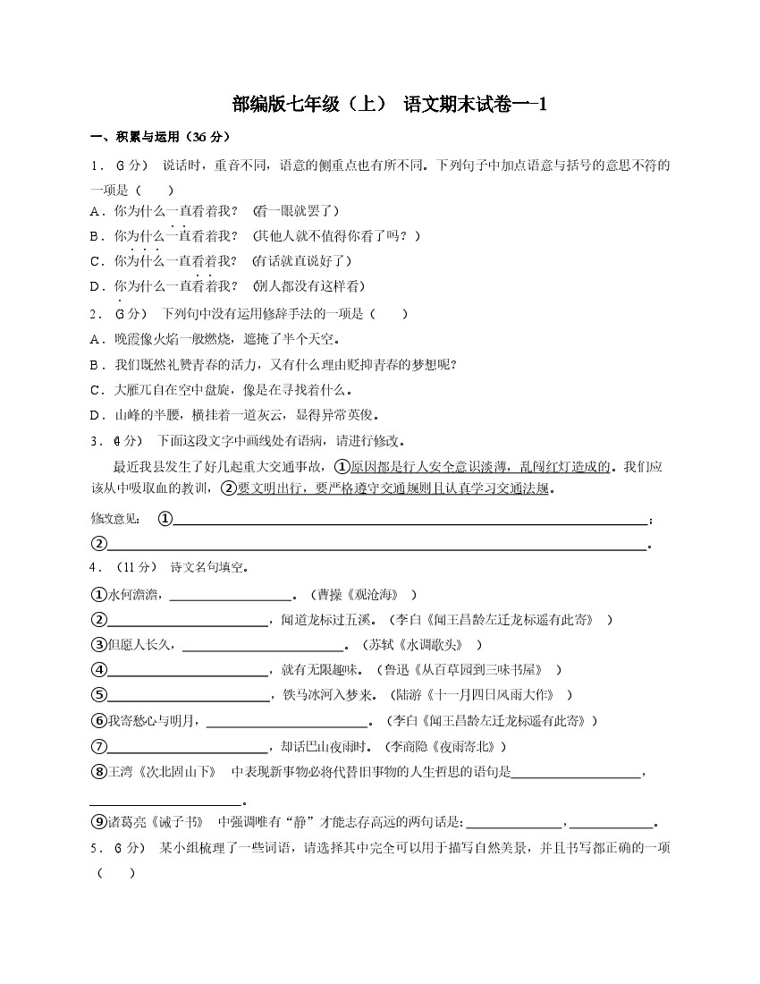 【七年级上册语文】第五单元 名著专项四 《西游记》第五十一至一百回课后巩固练