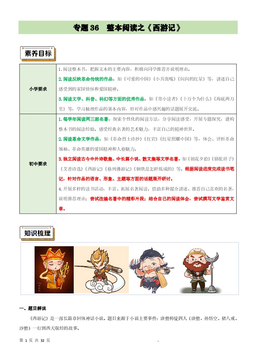 七年级(上)语文整本书阅读《西游记》精品讲义
