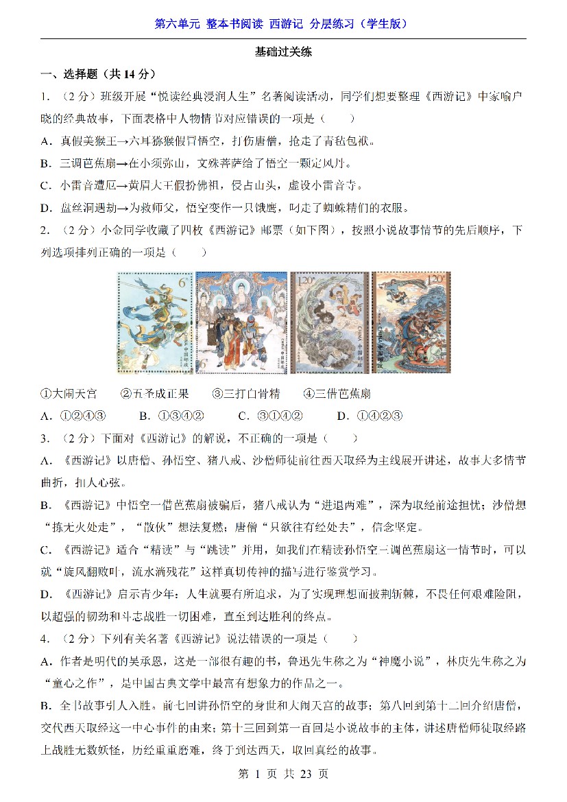 七年级(上)语文第六单元 整本书阅读 西游记 分层练习