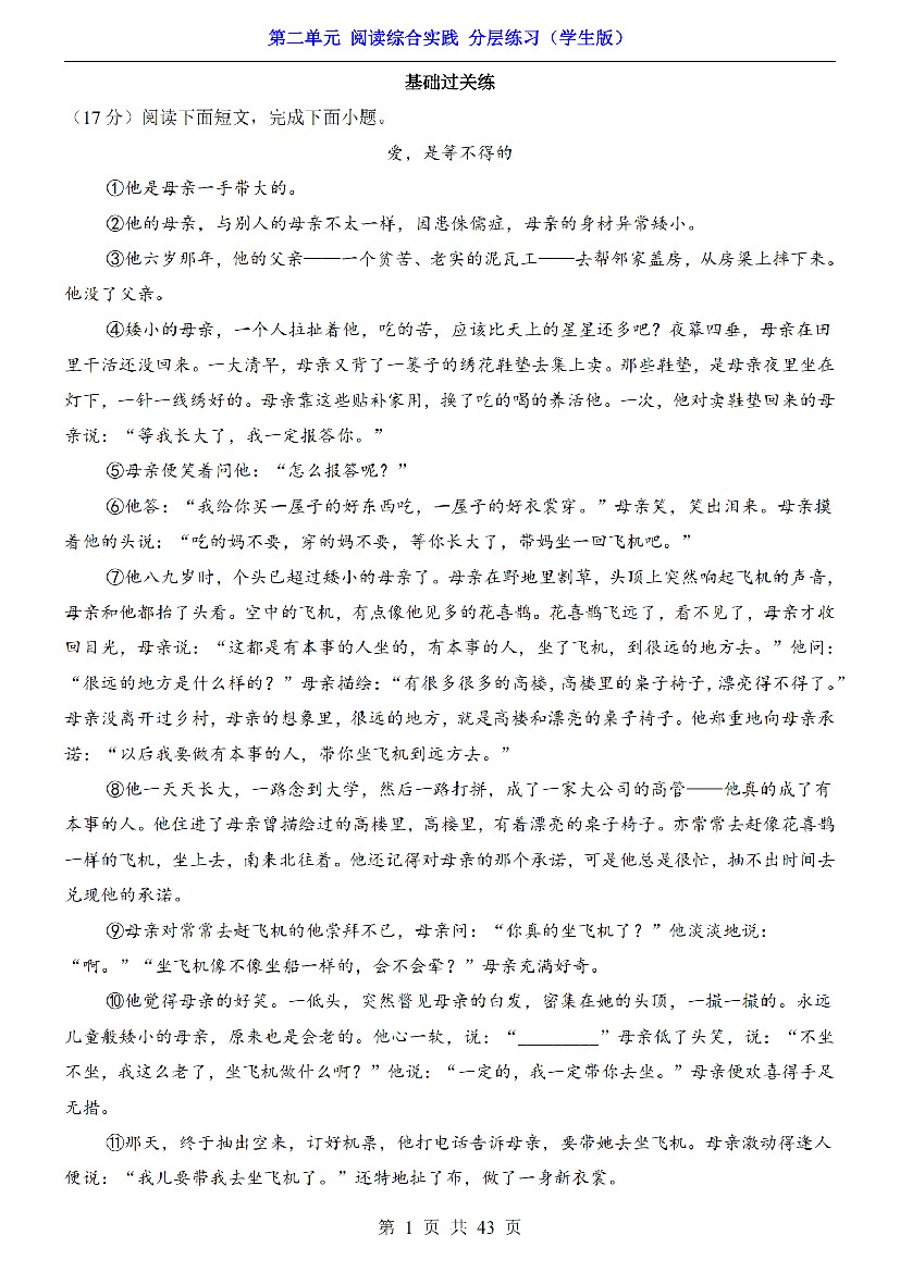 七年级(上)语文第二单元 阅读综合实践 分层练习