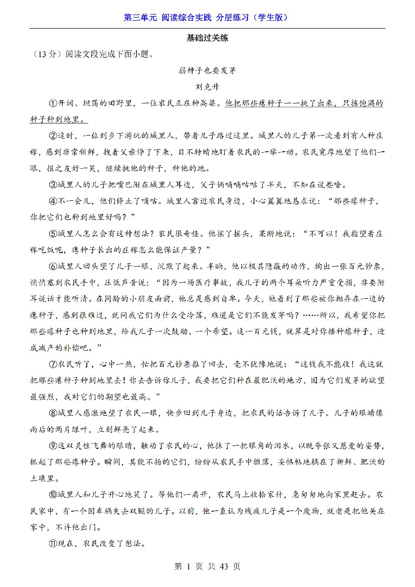 七年级(上)语文第三单元 阅读综合实践 分层练习