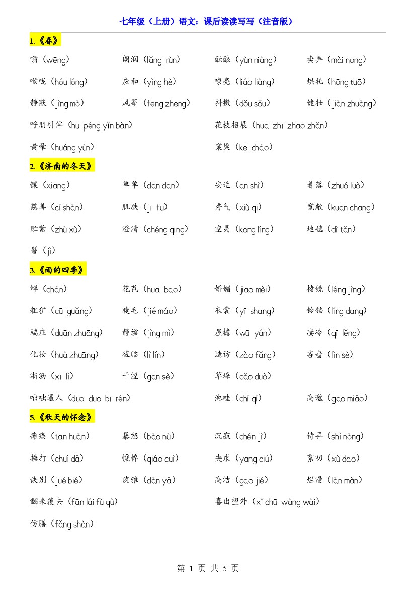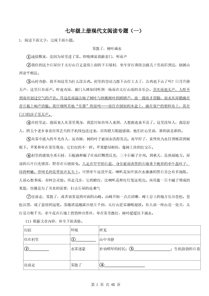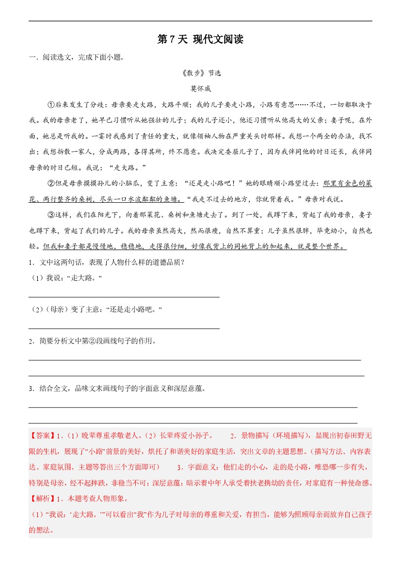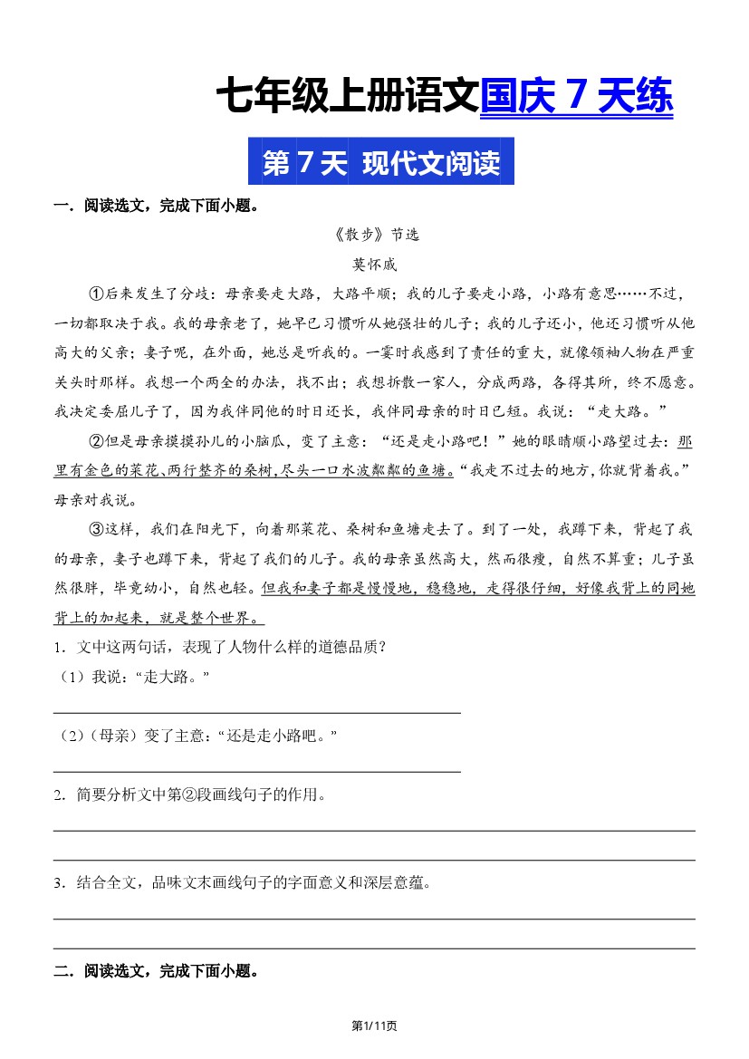 【七上语文】07现代文阅读--2025国庆7天练(原卷版)