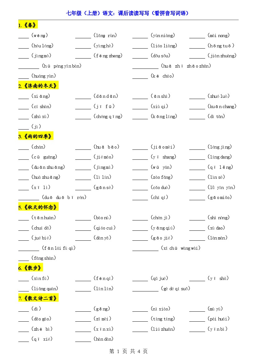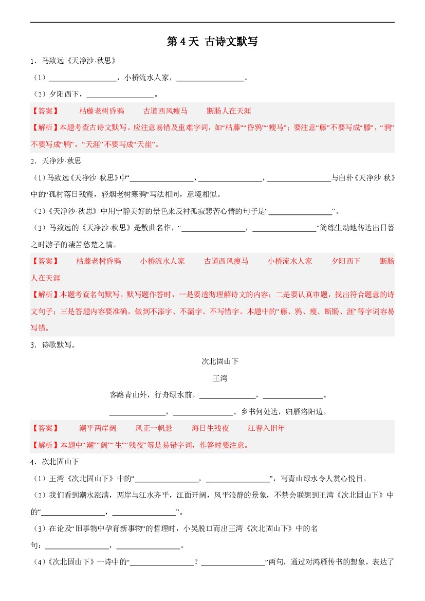 【七上语文】04古诗默写--2025国庆7天练(解析版)