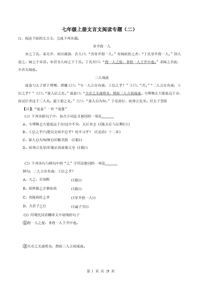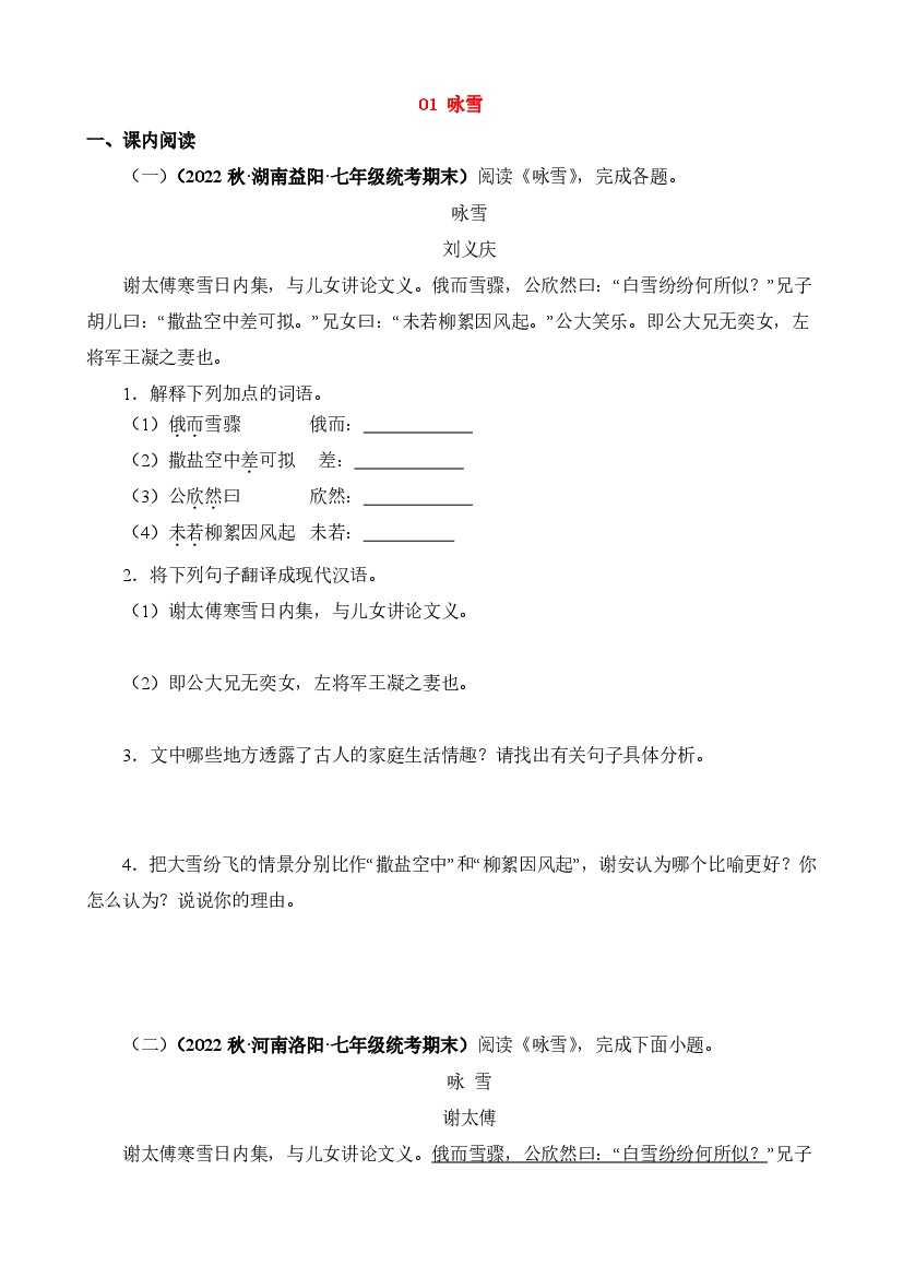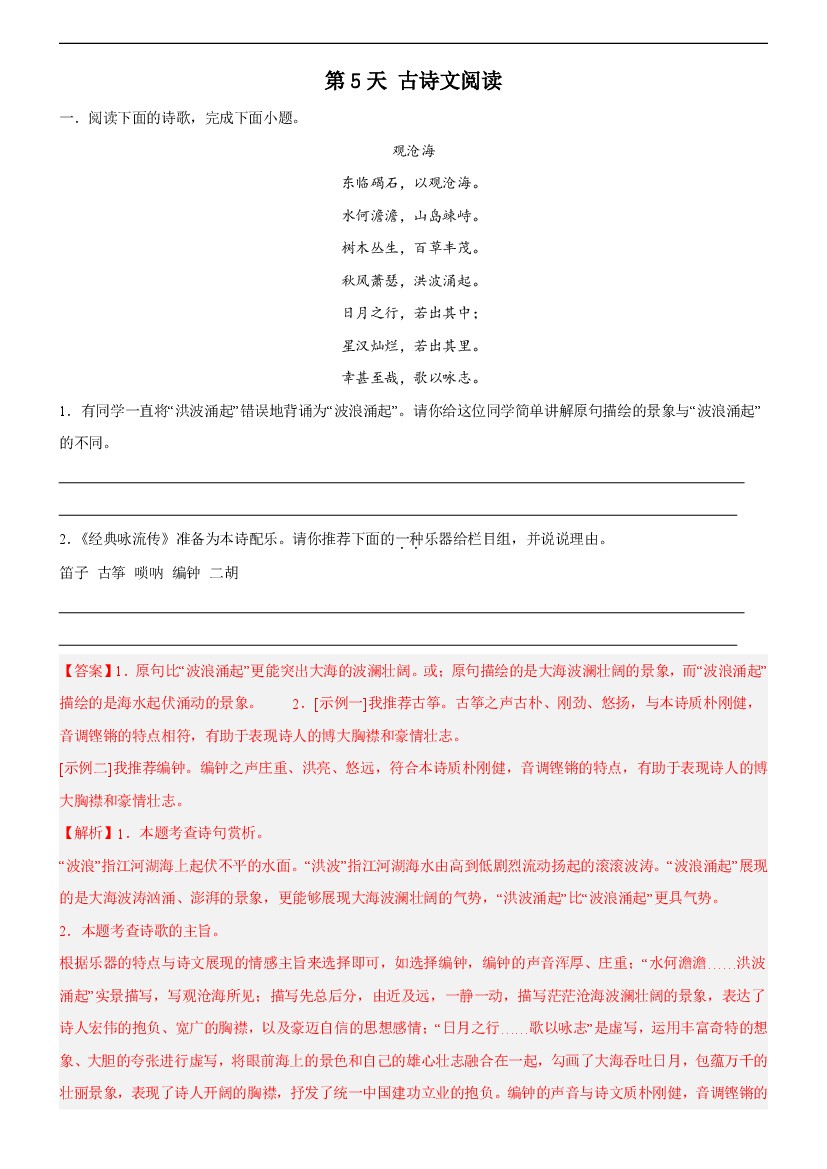 【七上语文】05古诗文阅读--2025国庆7天练(解析版)