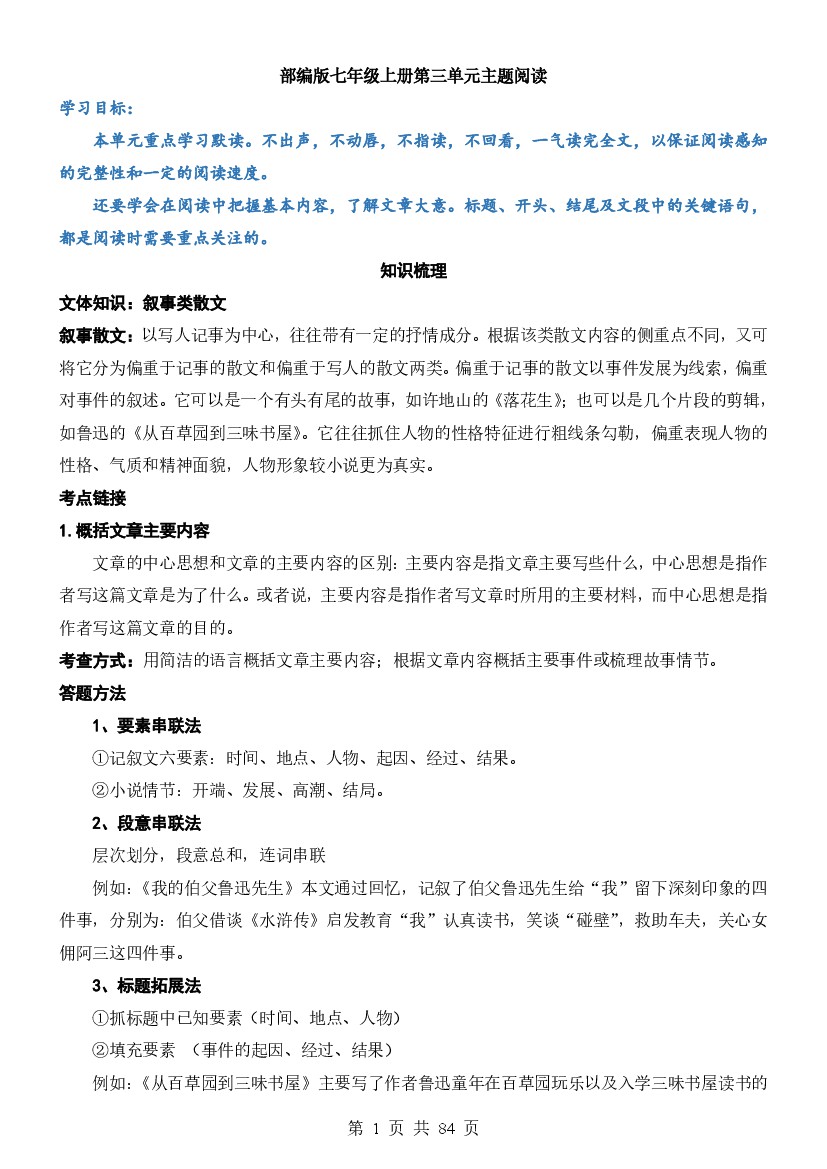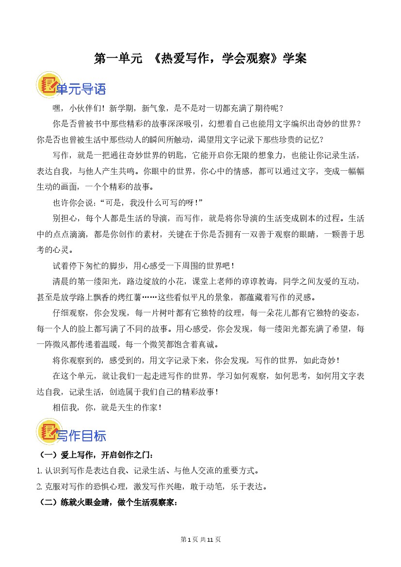 【作文】七年级上册语文专题01:热爱写作学会观察(课文回顾+要点技巧+课内写作范文)