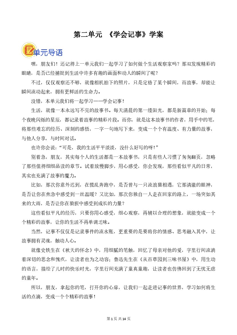 【作文】七年级上册语文专题09:学会记事(课文回顾+要点技巧+课内写作范文)