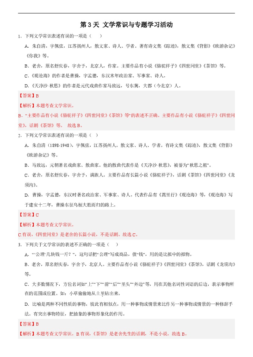 【七上语文】03文学常识与专题学习活动--2025国庆7天练(解析版)