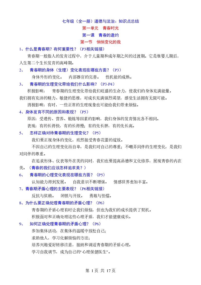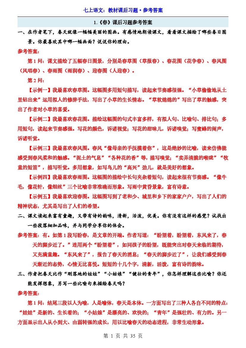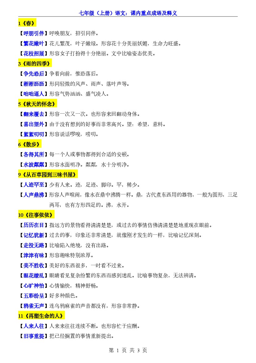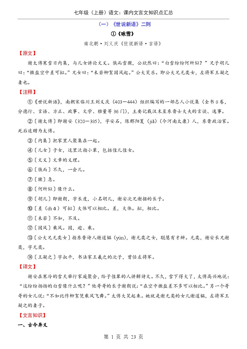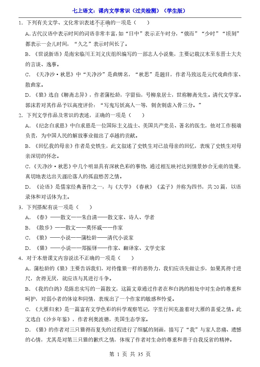 七上语文课内文学常识(知识梳理+过关检测)【43页】