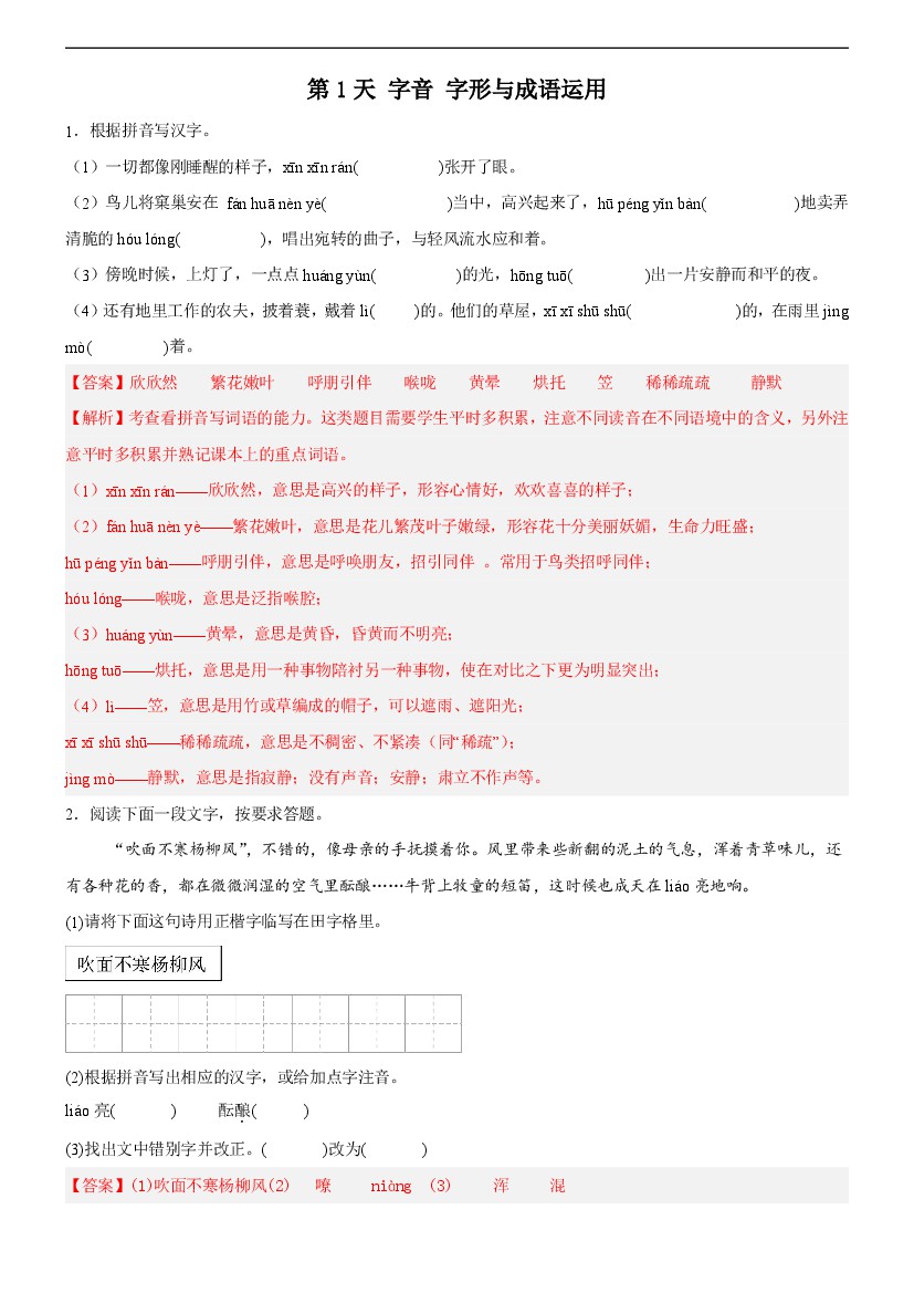 【七上语文】01字音字形与成语运用--2025国庆7天练(解析版)