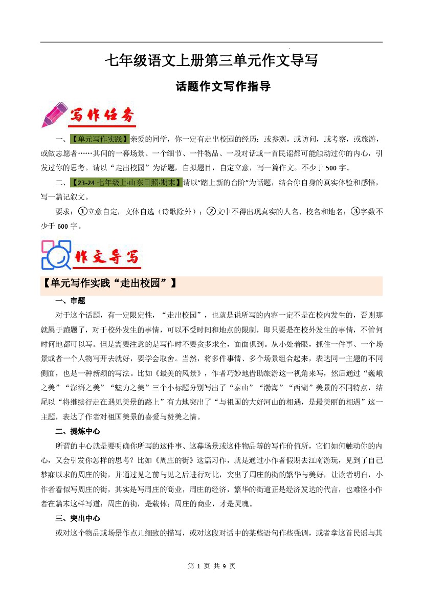 【作文】七年级上册语文专题12 单元作文导写(话题作文写作指导)-【同步作文课】