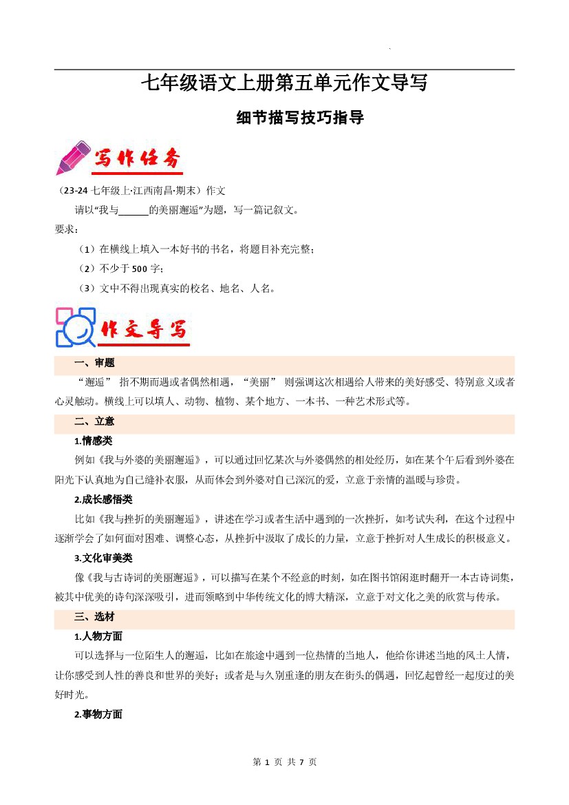 【作文】七年级上册语文专题20 单元作文导写(细节描写技巧指导)-【同步作文课】