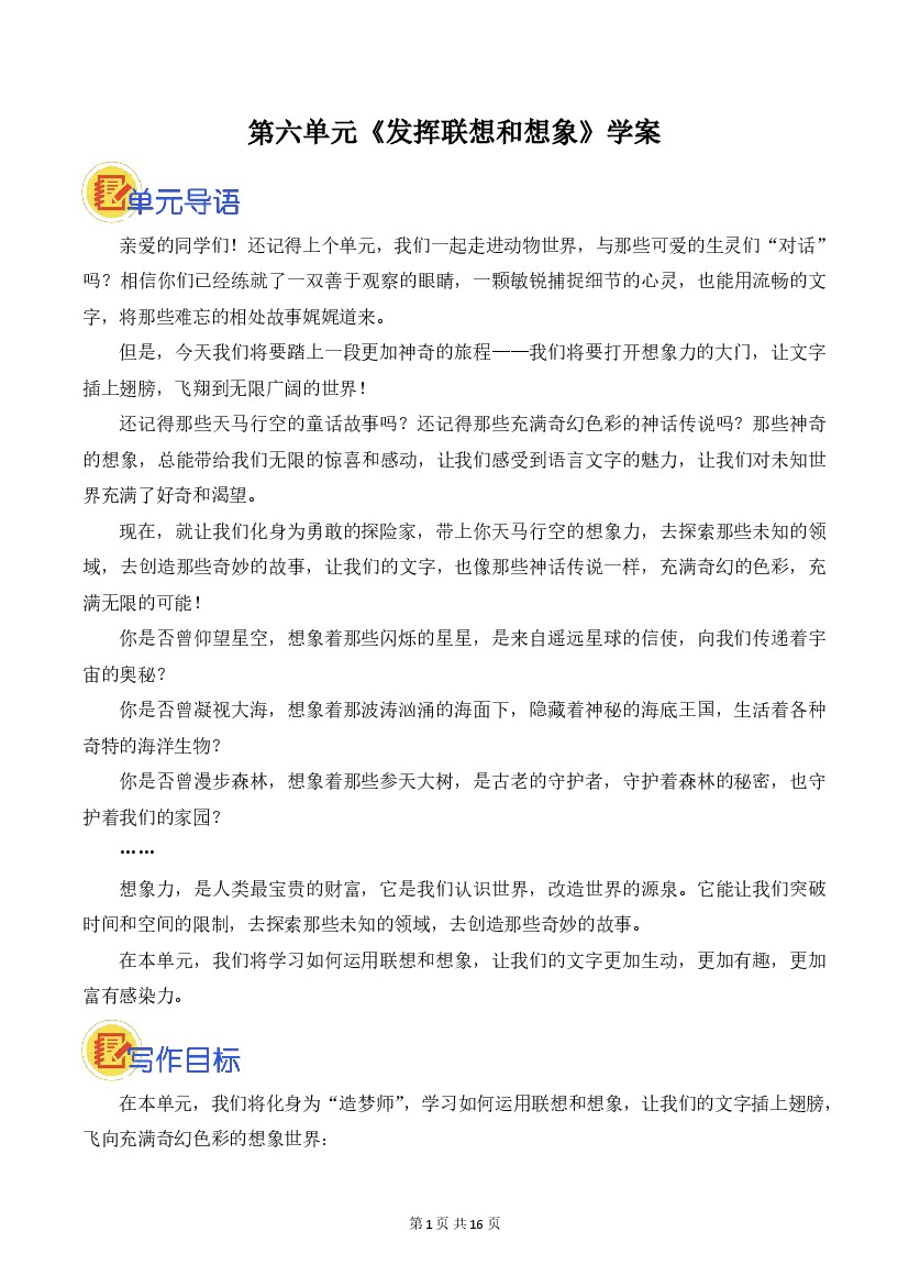 【作文】七年级上册语文专题21:发挥联想和想象(课文回顾+要点技巧+课内写作范文)