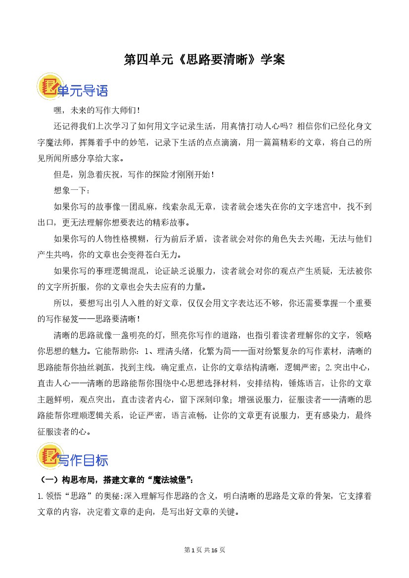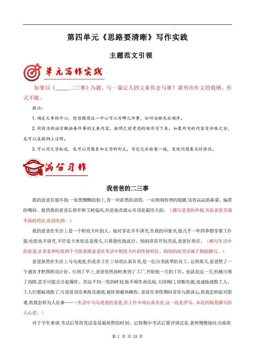 【作文】七年级上册语文专题17:思路要清晰(课文回顾+要点技巧+课内写作范文)