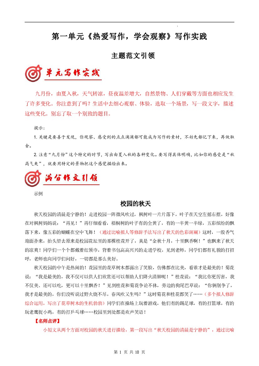 【作文】七年级上册语文专题11 主题范文引领-【同步作文课】
