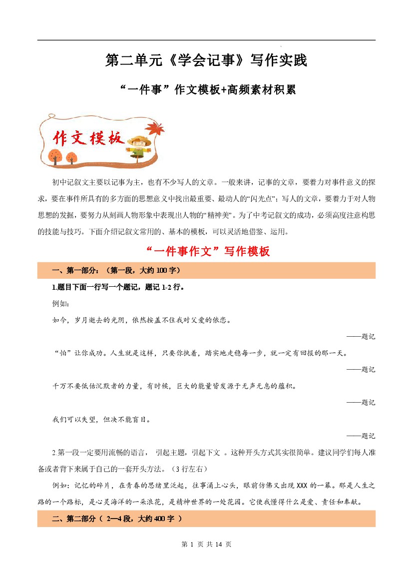 【作文】七年级上册语文专题02 初中记叙文写作模板+高频素材积累-【同步作文课】